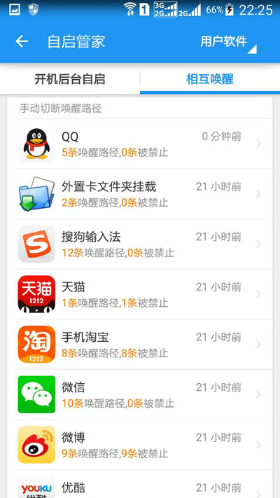 而UC浏览器更加夸张了,你的系统网络变化,解开锁屏都会自动唤醒uc浏览器,然后uc再去唤醒手机淘宝等其他。 (脑补一下然后淘宝唤醒支付宝,支付宝唤醒美团)